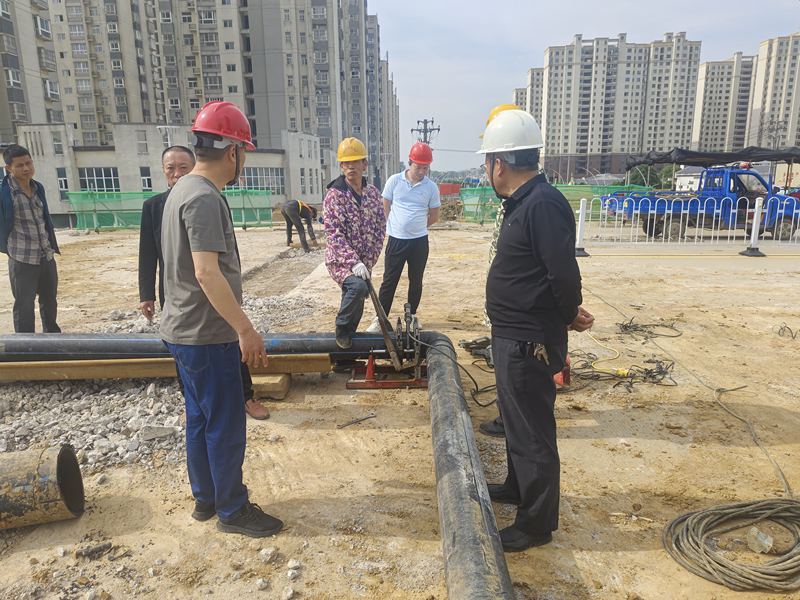 5月9日,为切实提高供水服务质量,英国365集团公司主要负责人前往韩文路桥施工现场督导管网工程施工情况。