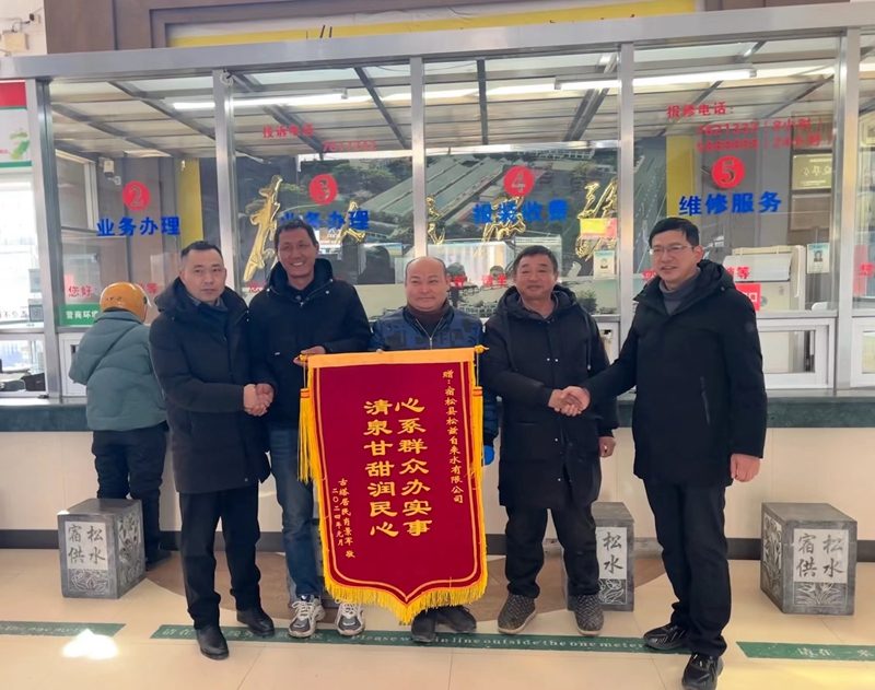 “谢谢你们帮我们解决了困扰多年的用水难题,我们现在用水可方便了!”1月24日上午,家住司坦巷的居民肖先生亲自将一面印有“心系群众办实事,清泉甘甜润民心”的锦旗送到了英国365集团公司总负责人手中,对松兹水司在司坦巷小区供水管网改造工程中高效快捷的服务表示由衷的感谢。