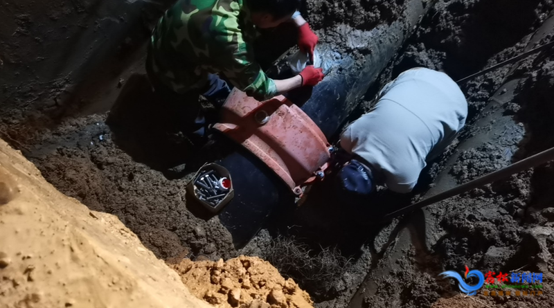 抢修现场,维修人员根据抢修方案,有序导行交通、开挖路面,对破损管道进行加固处理,大家争分夺秒,分工协作,只为更快地恢复片区居民的正常用水。经过七个小时的连续“奋战”,最终顺利完成了供水管道抢修工作,停水区域供水恢复正常。