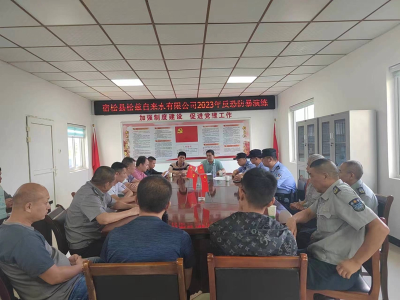 为进一步提高重点安保单位反恐防暴水平,面对暴恐突发事件的合理处理、应变反应能力,营造全员参与反恐的良好氛围。9月27日,宿松松兹自来水公司在第二制水厂开展反恐防暴应急演练,县孚玉派出所副所长吴正雅带队到场指导,并进行反恐防暴设备、擒拿要领等专业培训。