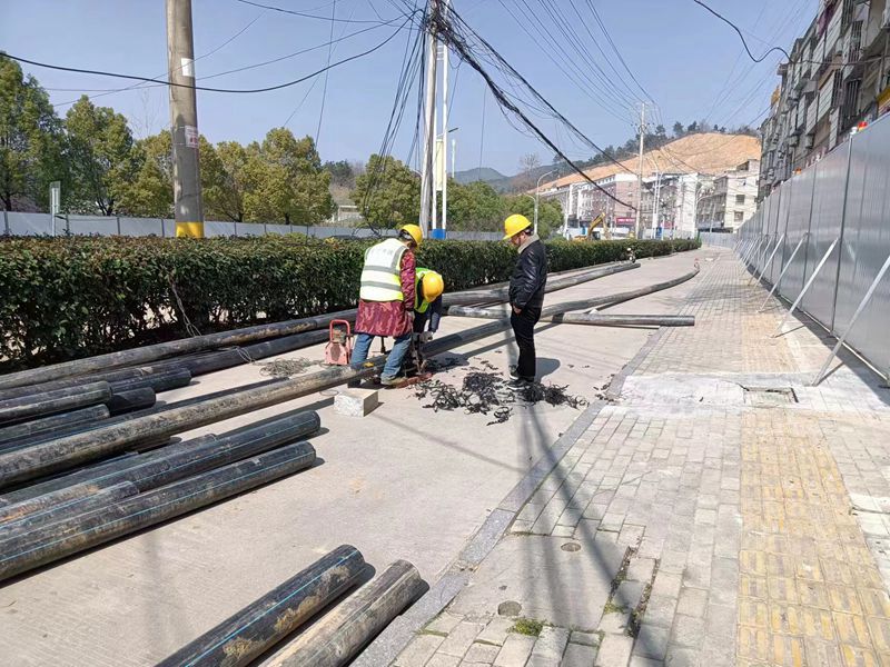 县水司采用作业区域道路两侧新安装DN200临时管道与沿街用户管网连通的供水方案,最大限度保证沿线及周边用户用水。工程开工以来,已完成北浴路-绿道及宿中后门至学府花园临时保供管共400余米安装连接。同时,根据道路改造施工进度,合理安排施工时间,采用与施工单位穿插施工、夜间加班施工等方式,同步进行老旧管道升级改造。
