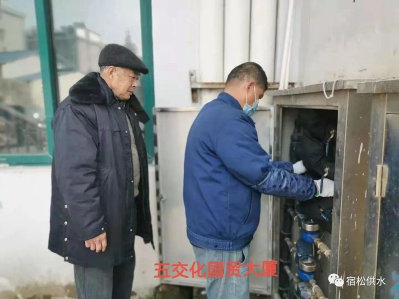 县自来水厂多举并措对用水设施防冻多方面进行宣传。一是通过宿松新闻网站、论坛、微信公共号和现场发放防冻宣传单等方式,提醒广大用户如何对自家水表管道进行防冻。二是安排抄表员对县城各小区的水表分片包干,向各小区物业宣传防冻措施并免费发放水表防护保温套,由抄表员亲临演示如何使用防护套包裹水表,确保水表安全过冬。
