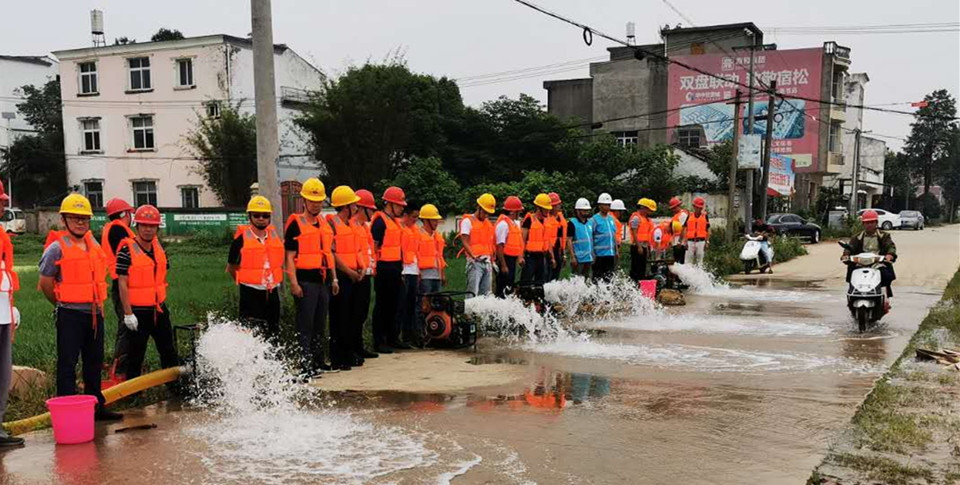 此次演练主要模拟县城遭受暴雨袭击,造成多个小区水淹受灾,县城防汛指挥部启动一级防汛应急预案。县水厂防汛应急抢修分队接到紧急抢险通知后迅速反应,立即集合抢修队伍,准备抽水机泵赶赴现场。现场25名抢修队员相互配合,快速装配、接管、启动柴油机,10分钟后小区积水成功化解,达到了预期目标。