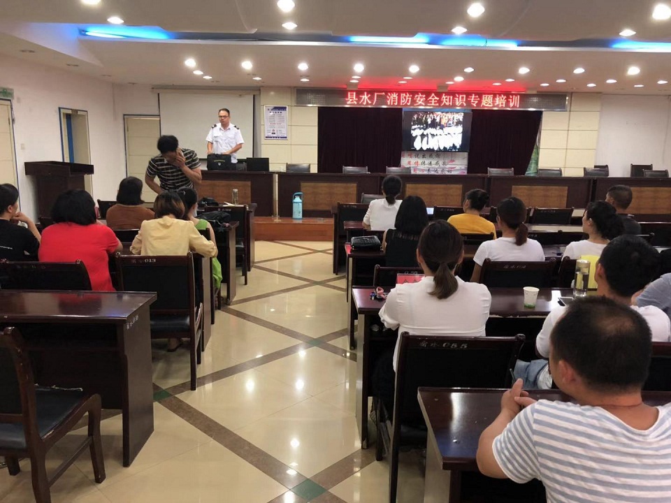 为进一步加强县水厂广大员工消防安全意识,普及消防安全知识,开展安全宣传。8月15日下午在黎河园三楼会议室,邀请消防专家开展消防安全专题培训讲座。县水厂相关部门和人员参加了培训。