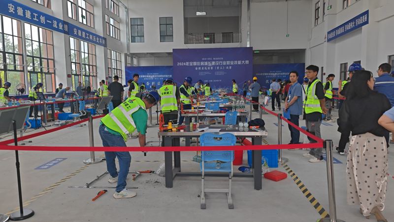比赛现场,参赛选手们热情高涨、干劲十足,现场氛围紧张而热烈,选手们熟练地操作着各类工具设备,一系列操作如行云流水,不仅展现了精湛的专业技能,更体现了高超的职业素养。