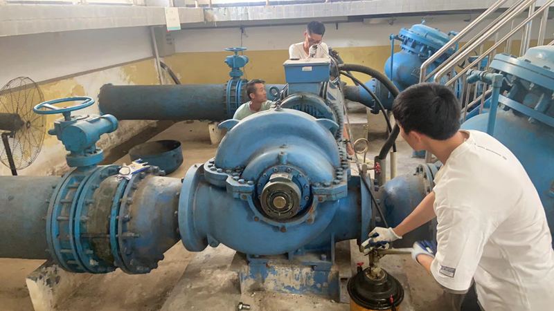 为保障国庆节假期间供水设备运行平稳有序,近期,县松兹自来水有限公司组织技术人员对制水厂及各市政加压泵站机电设备进行全面检修维护。