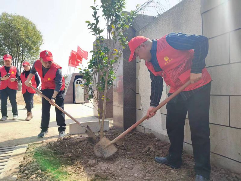 活动当天,志愿者们早早地就来到了植树现场,随后领导们带头挥锄挖土,其他志愿者也纷纷加入行列,有条不紊地开展植树活动。有的手持铁锹挖坑挖土,有的摆正树苗,有的则培土浇水,大家分工有序,干劲十足,现场一片忙碌和谐的景象。经过一上午的努力,一棵棵小树苗在阳光的照耀下挺立了起来,展现出了顽强的生命力,为九成村增添了一抹新的绿色。