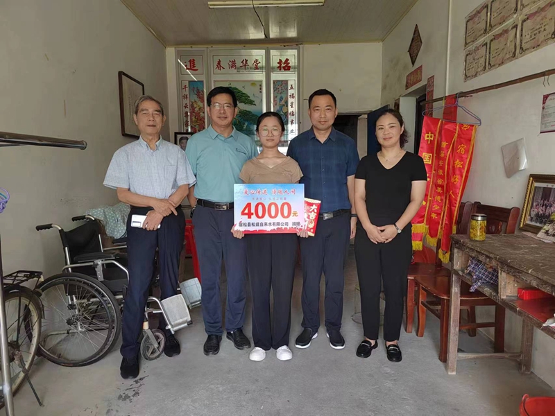 “扶贫济困,崇德崇善”是中华民族的传统美德。8月10日,县松兹自来水有限公司主要负责人一行再次来到复兴镇王营村看望慰问获得“中国好人”“安徽美德少年”马鞍山学院大学二年级学生吴秀琴同学。
