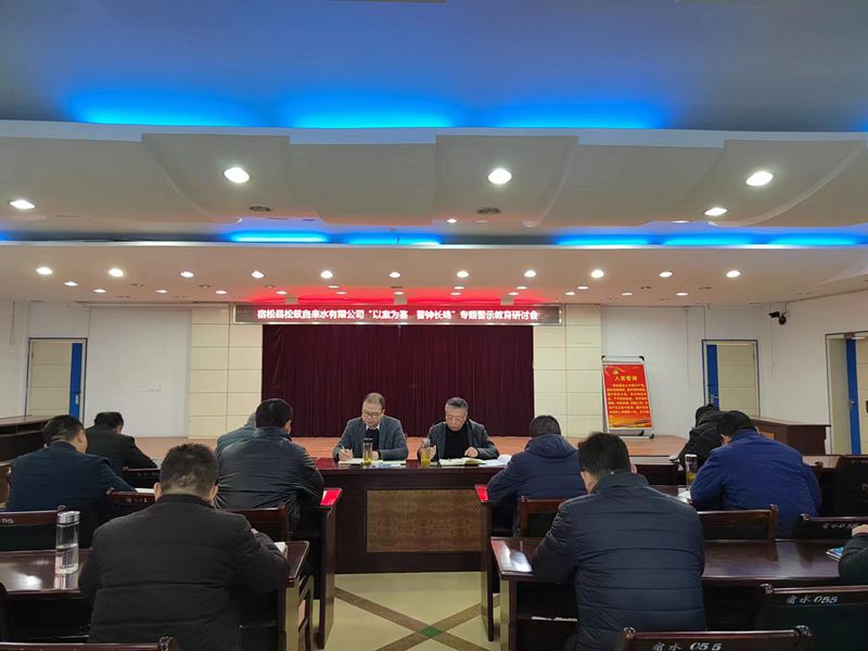 为进一步推进“以案为鉴 警钟长鸣”专题警示教育工作深入开展,根据全县实施方案部署要求。2月27日,县松兹自来水有限公司召开“以案为鉴 警钟长鸣”专题警示教育研讨会,会议由公司党支部书记主持,二级机构以上负责人及全体党员参会,局分管领导到会指导。