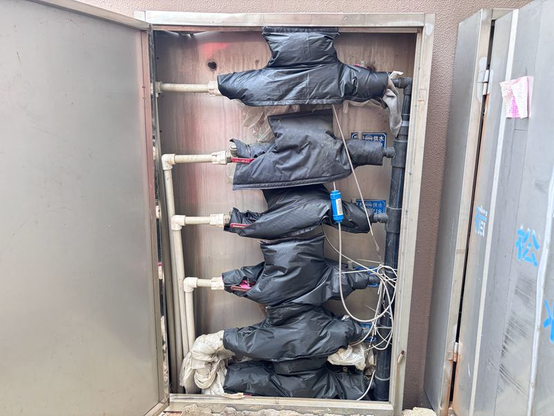 活动现场,水司工作人员首先对水表及周边的管道进行详细检查,清除了水表周边的杂物,随后为其套上水表保温套,确保包裹严实、不留缝隙,最后还对部分损坏的表箱进行了修复并使用专业的固定胶带进行加固,使其能够有效抵御寒潮侵袭。