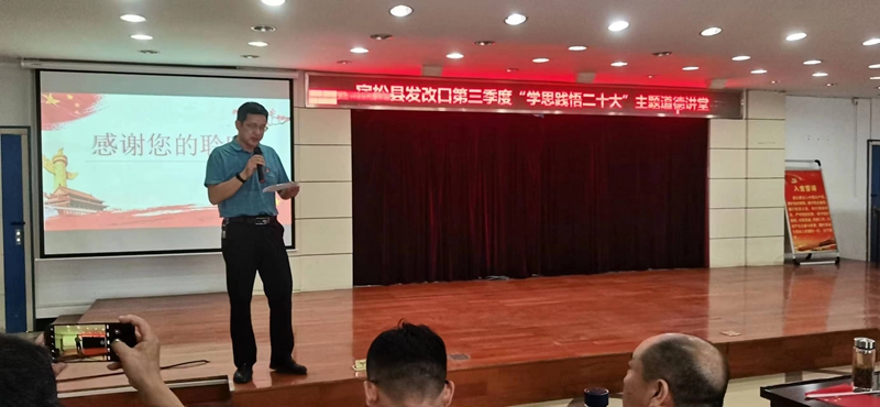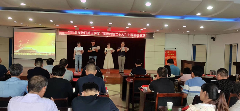为深入学习宣传贯彻党的二十大精神,营造浓厚的崇德向善氛围,激发广大党员干部职工干事创业的工作热情,7月28日,在美丽的黎河公园,由宿松县发改口主办,县住建局、县松兹自来水有限公司承办的“学思践悟二十大 砥砺奋进新征程”主题道德讲堂正式开讲,发改口各单位党员领导干部、职工60余人参加活动。