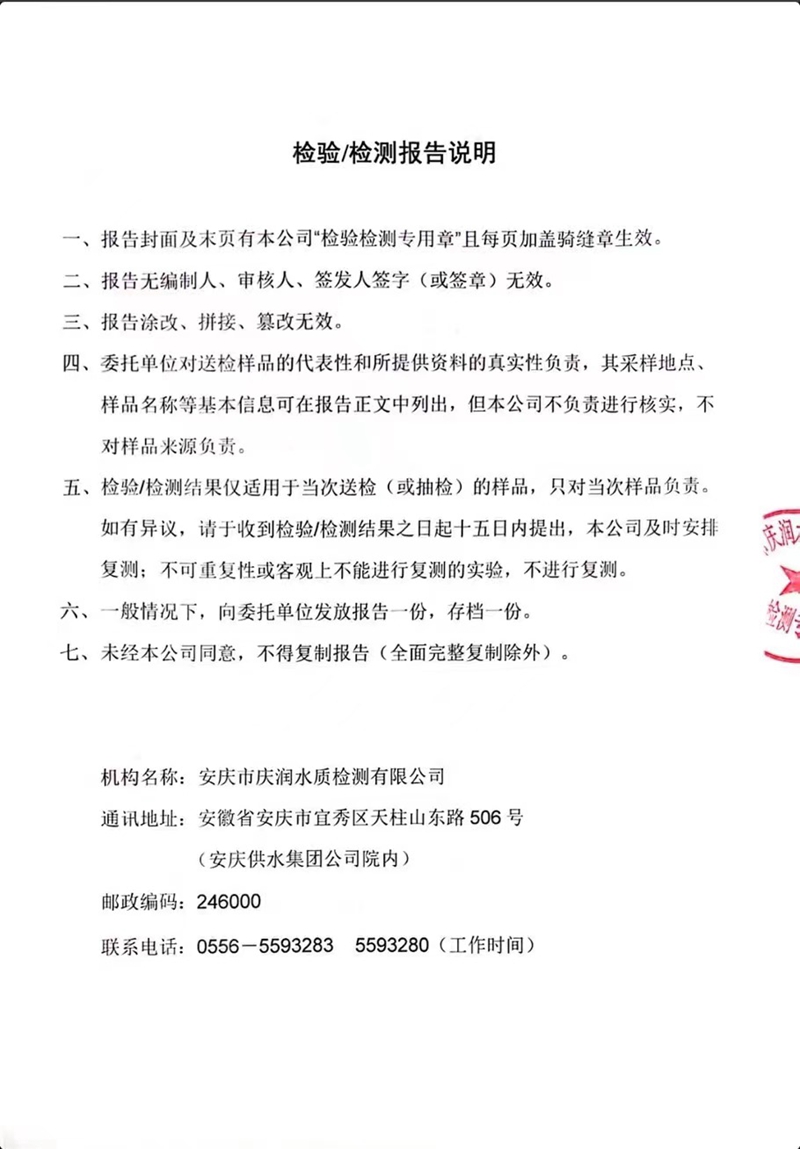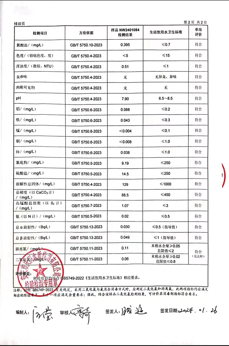 2024年1月下半月末梢水(管网13项)水质检测公告