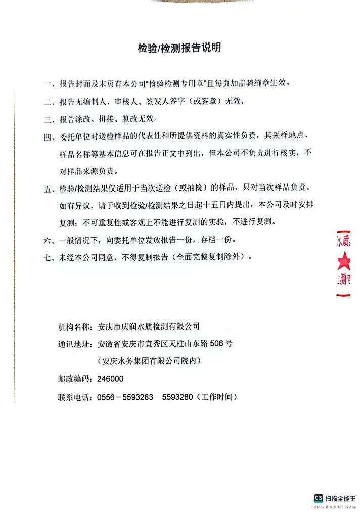 2024年12月份出厂水常规43项水质检测公告