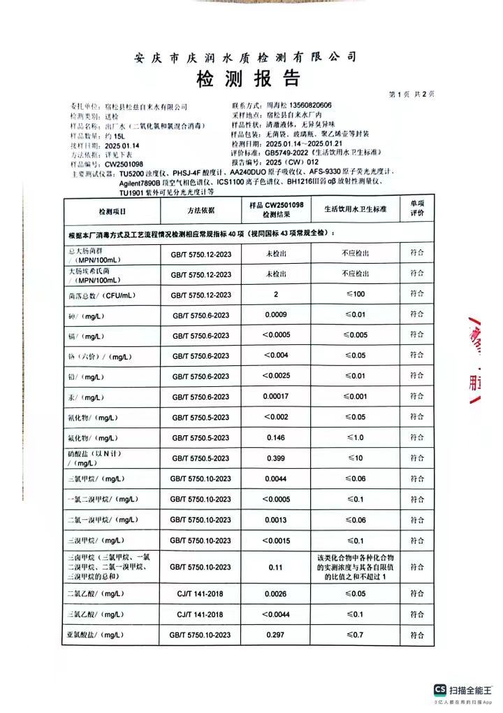 2025年1月份出厂水常规43项水质检测公告