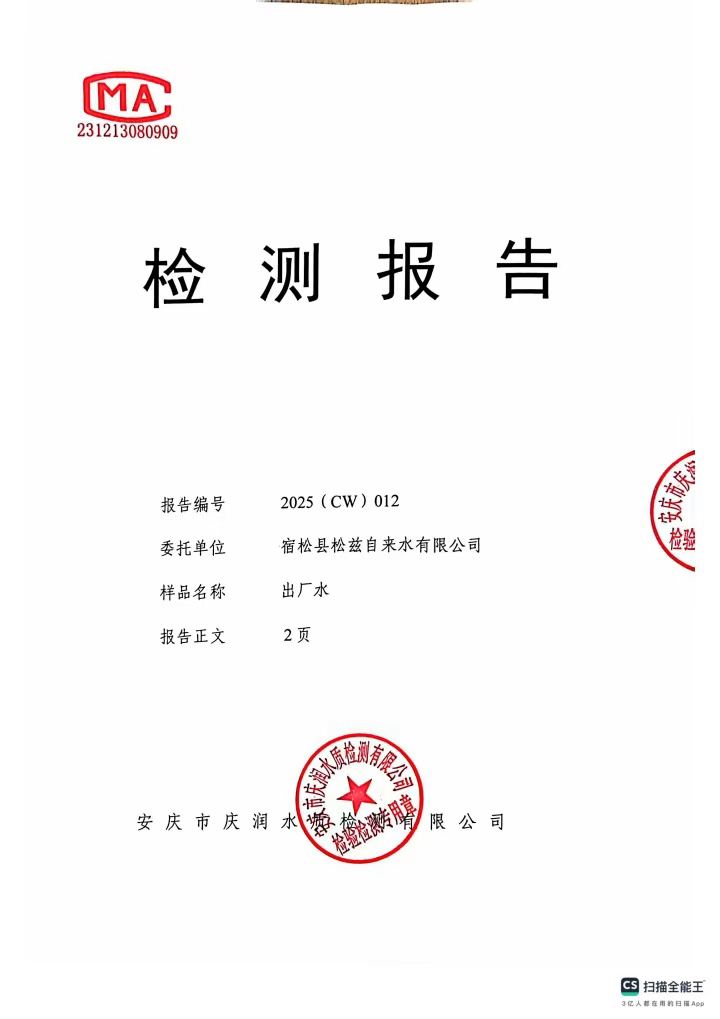 2025年1月份末梢水常规43项水质检测公告