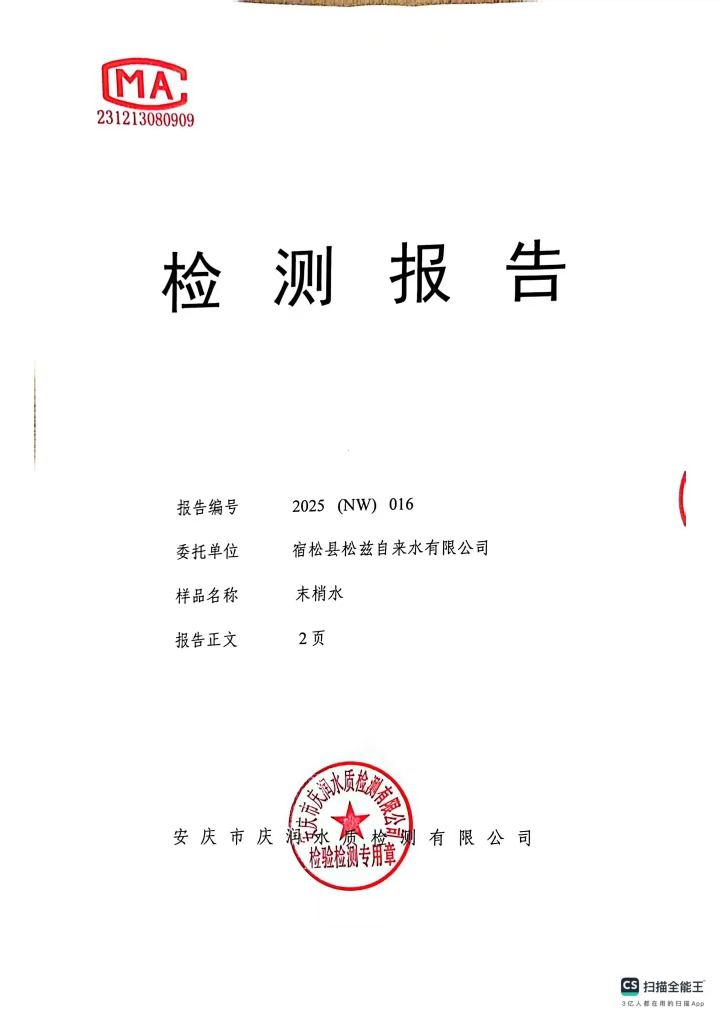 2025年1月份末梢水常规43项水质检测公告