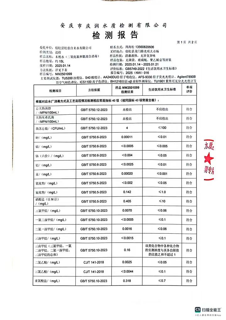 2025年1月份出厂水常规43项水质检测公告