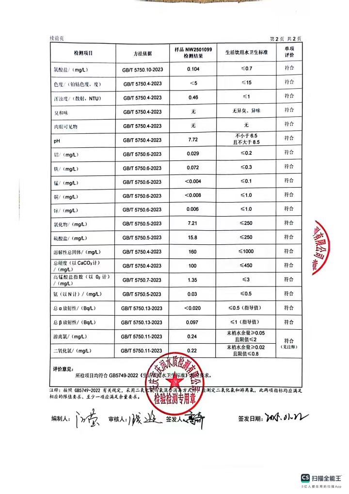 2025年2月份末梢水常规43项水质检测公告