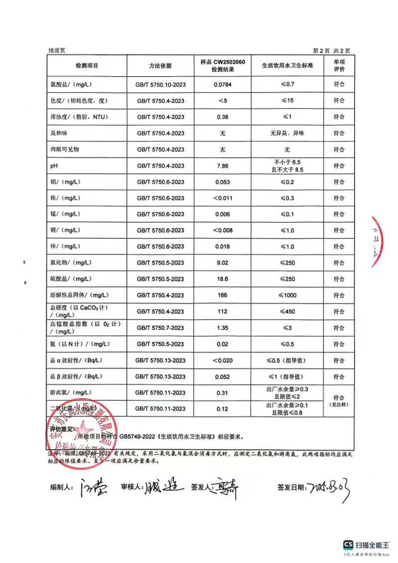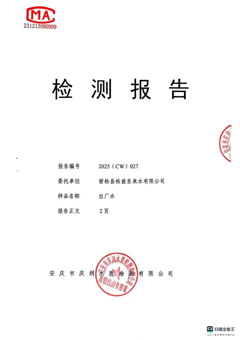 2025年2月份末梢水常规43项水质检测公告