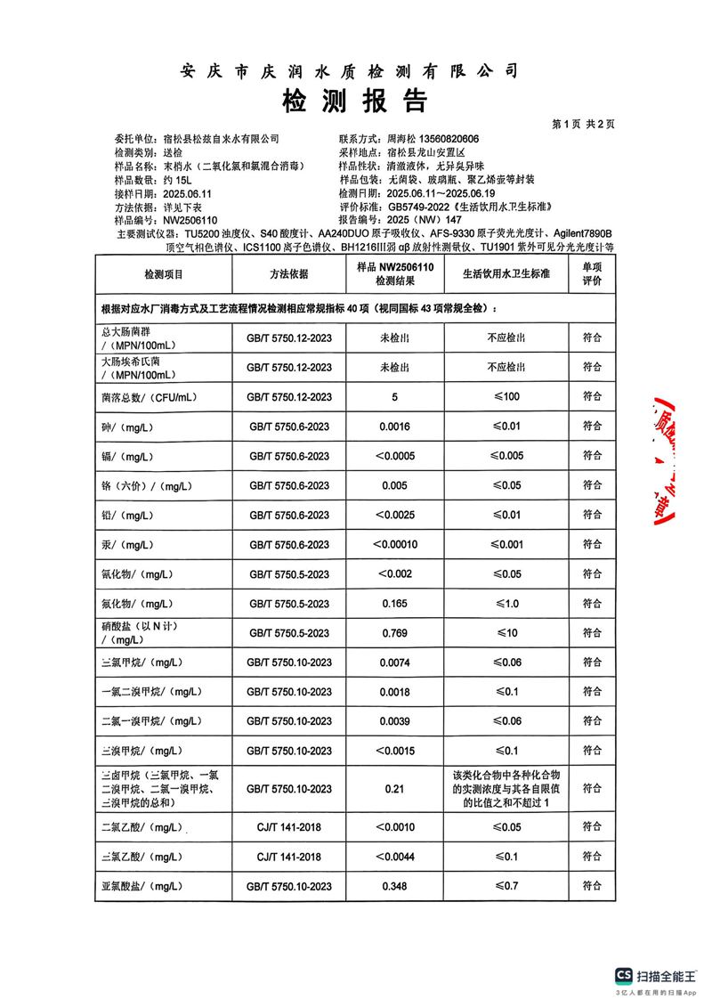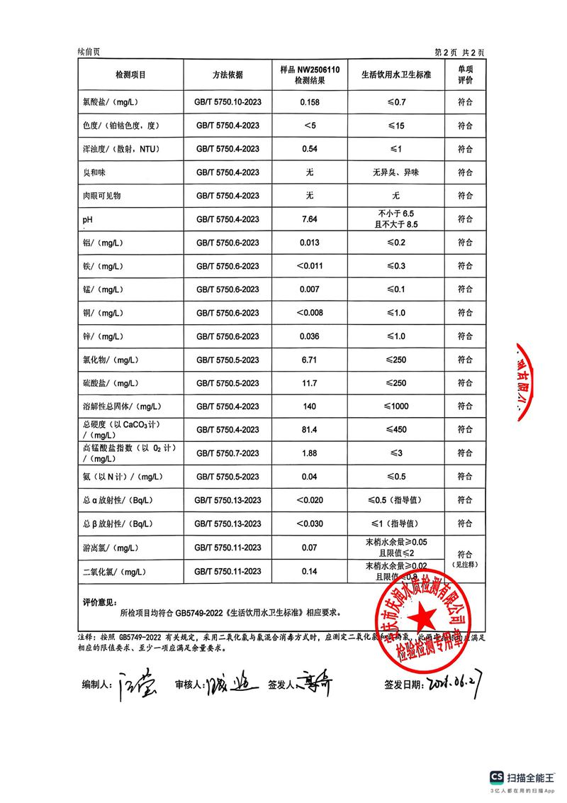 2025年6月份末梢水常规43项水质检测公告