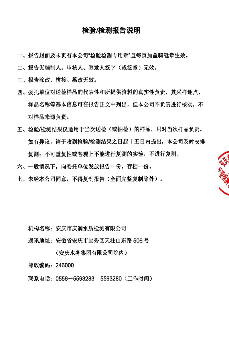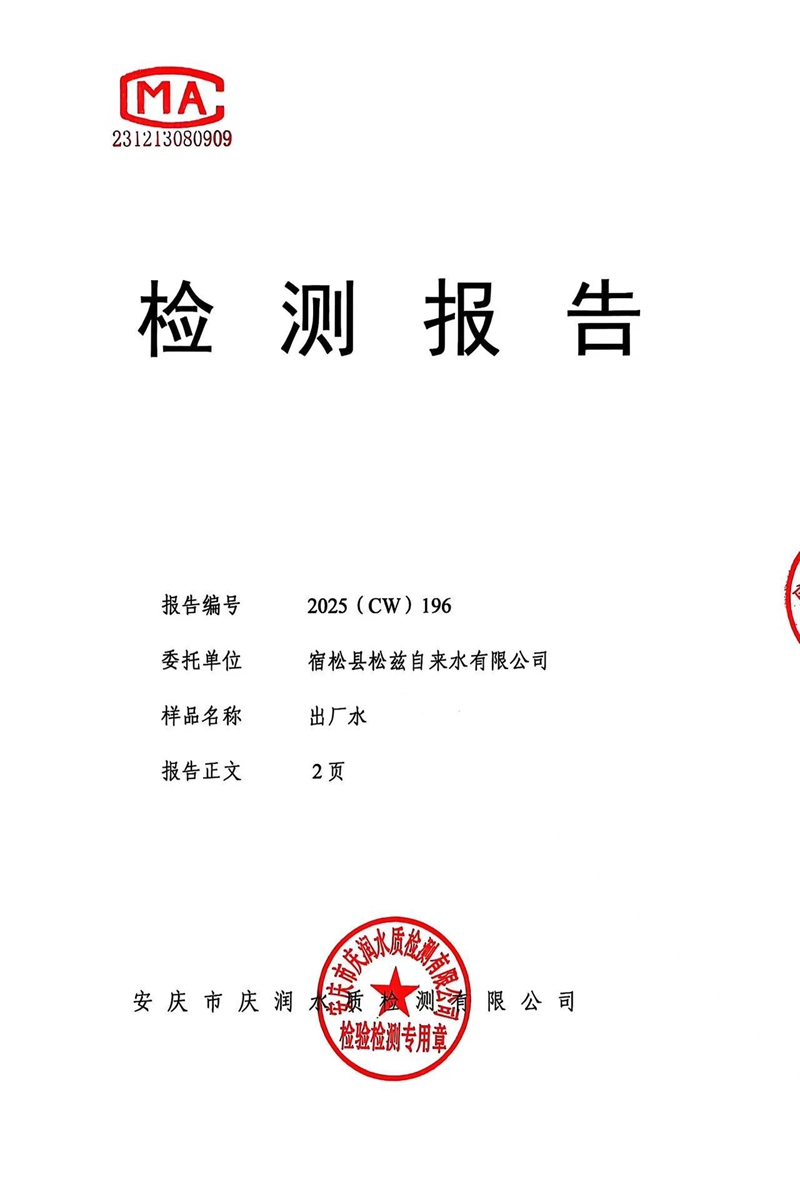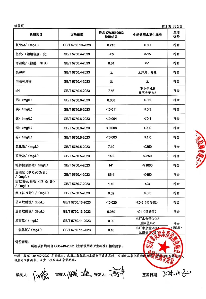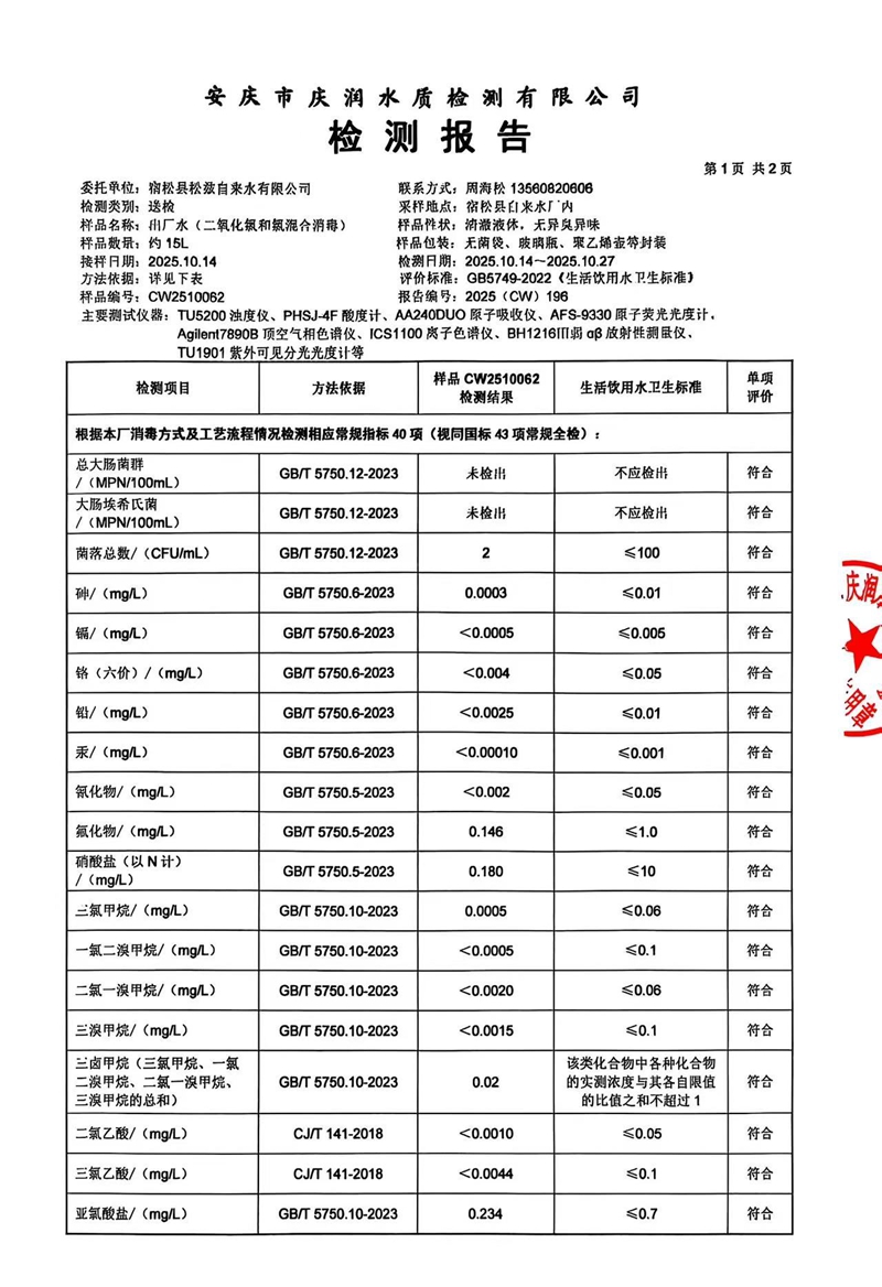 2025年10月份末梢水常规43项水质检测公告