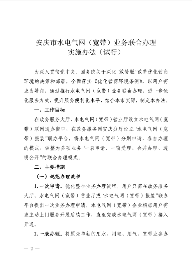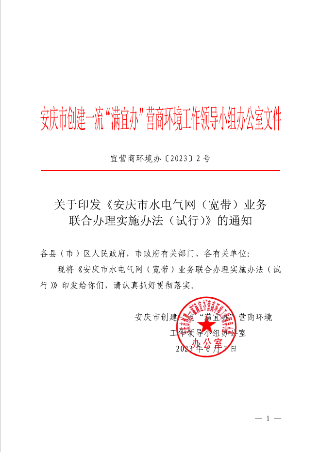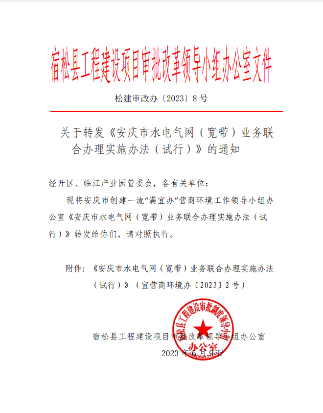 关于转发《安庆市水电气网(宽带)业务联合办理实施办法(试行)》的通知